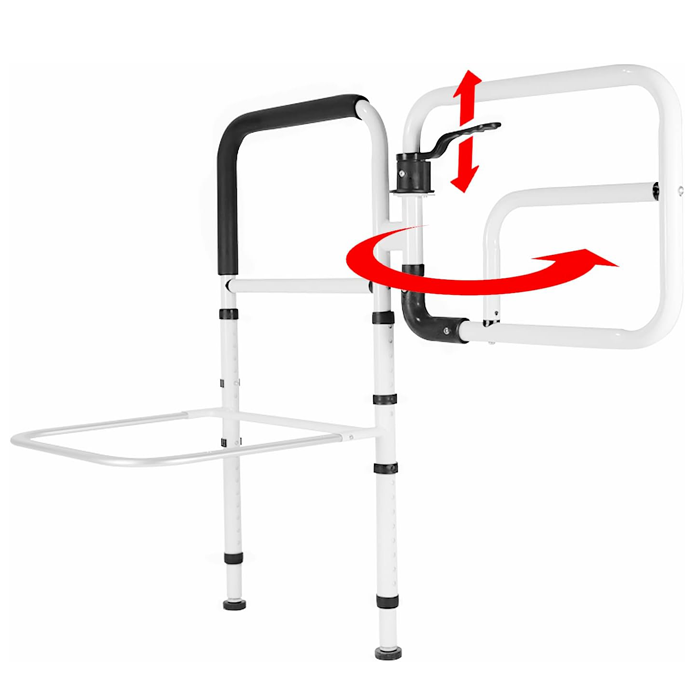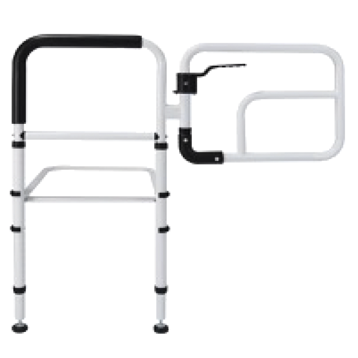 El barandal unilateral giratorio es un dispositivo de seguridad para cama, diseñado para auxiliar a adultos mayores o personas con movilidad reducida a entrar, salir o incorporarse de la cama.